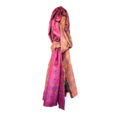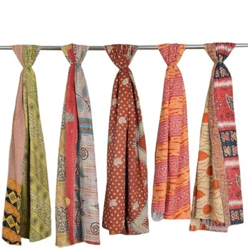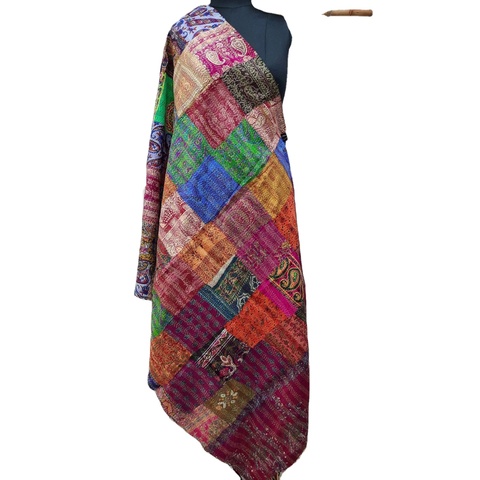 ผ้าพันคอไหม Kantha Patchwork,ผ้าพันคอไหมปักลายทำจากหนังแท้นุ่มใช้งานได้หลากหลายสไตล์อินเดียสำหรับผู้หญิง