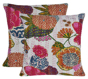 批发印度传统手工缝制多色花卉印花设计面料棉Kantha枕头靠垫套