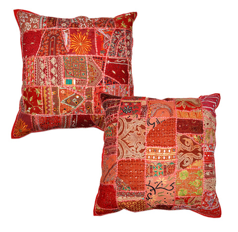 手工复古刺绣纱丽拼布印度民族枕头靠垫套家居和庭院装饰