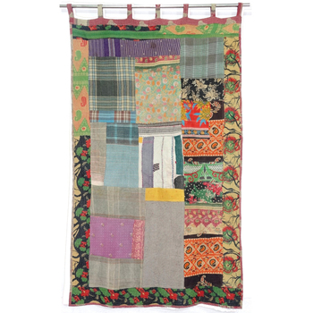 波西米亚可逆手工复古棉纱丽拼接Kantha融合边框窗帘悬挂